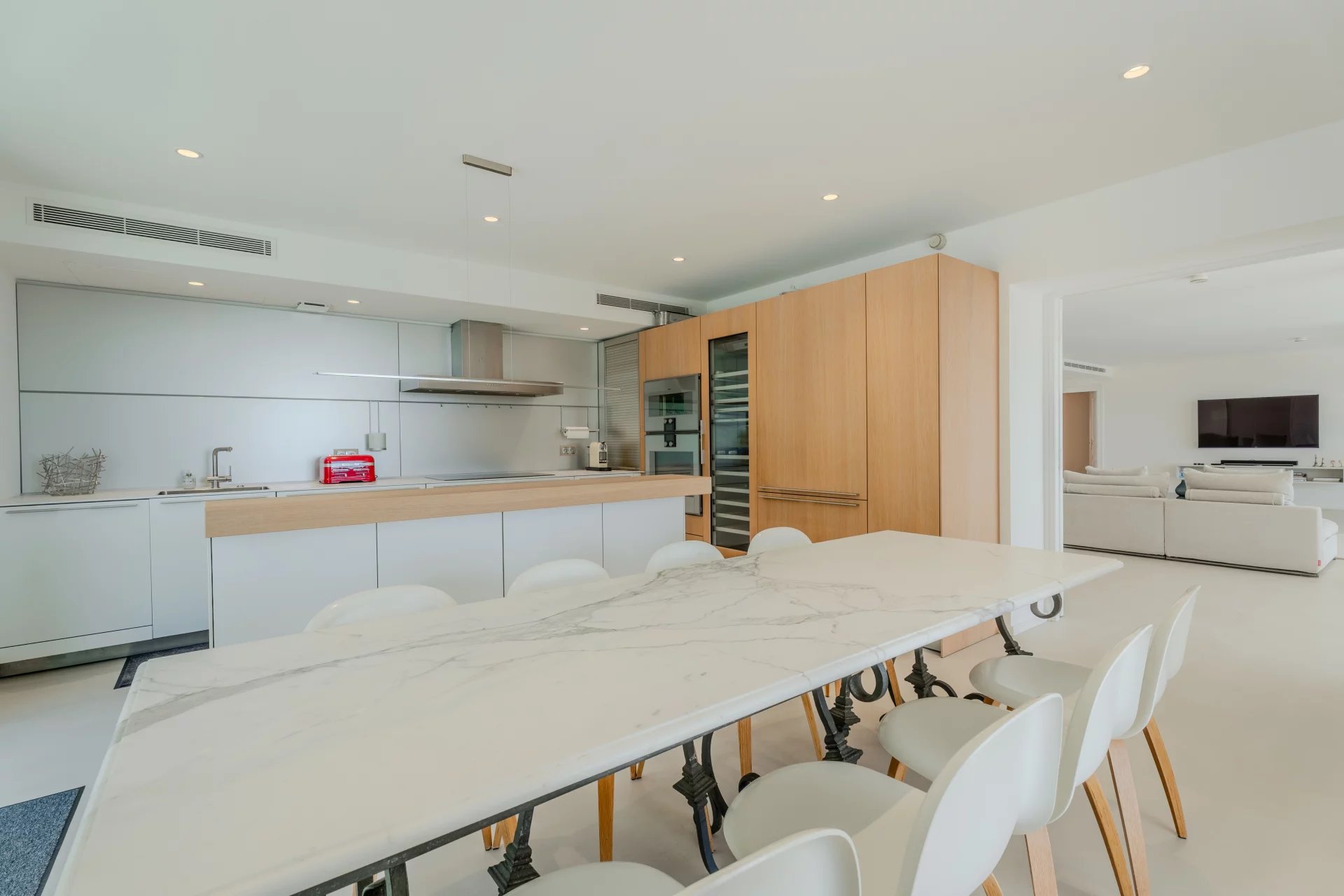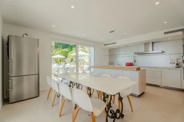 -A fully equipped kitchen opening onto a sun-soaked terrace