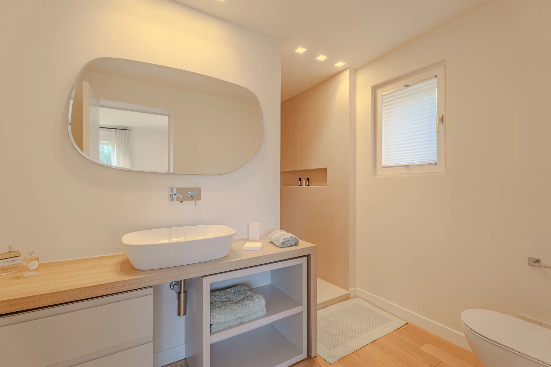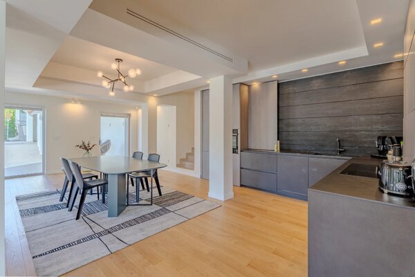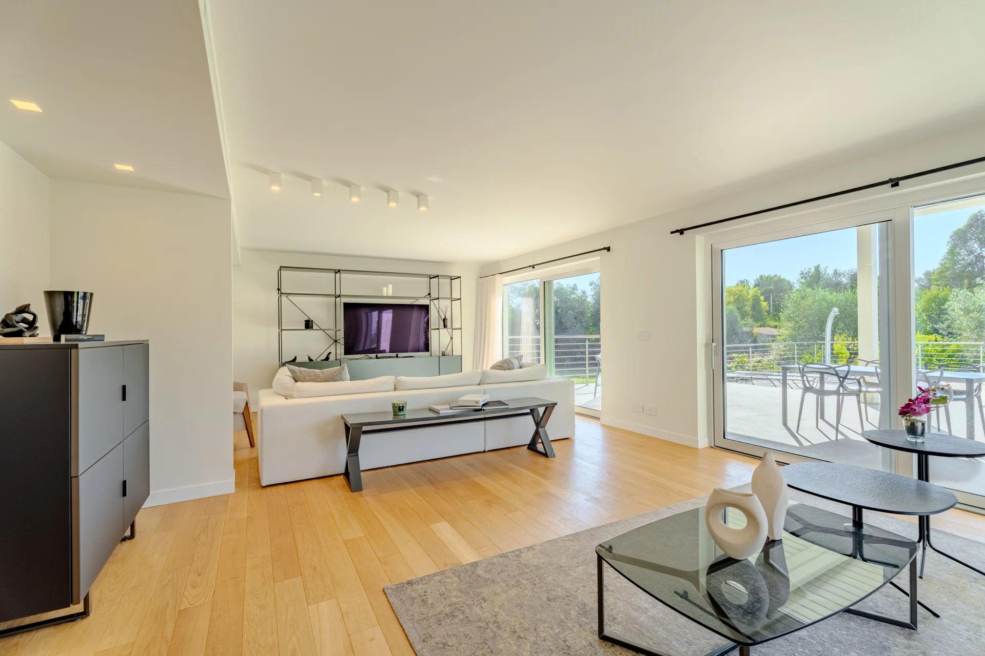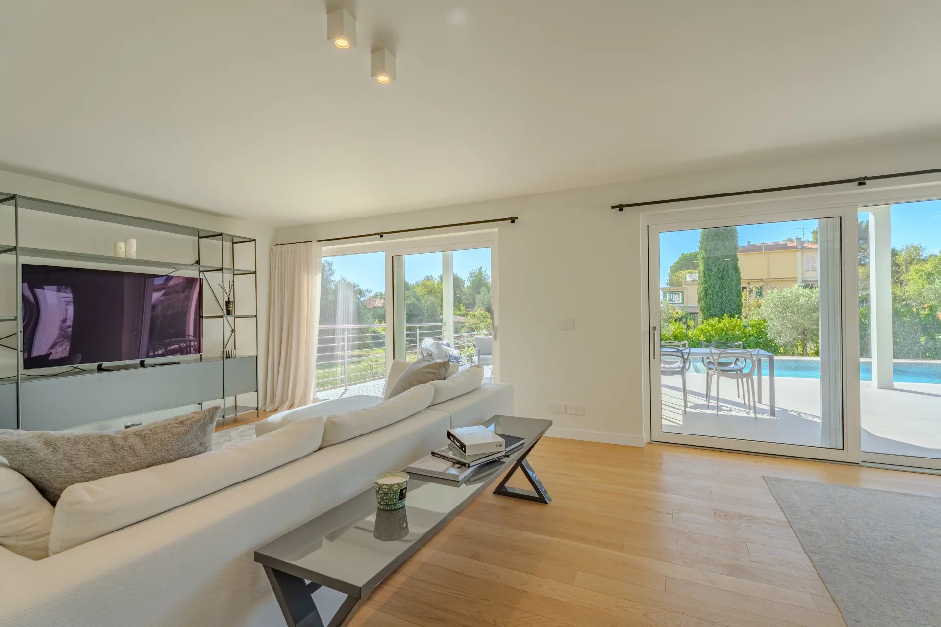Renovated with high-end materials, the villa features reversible air conditioning and underfloor heating.