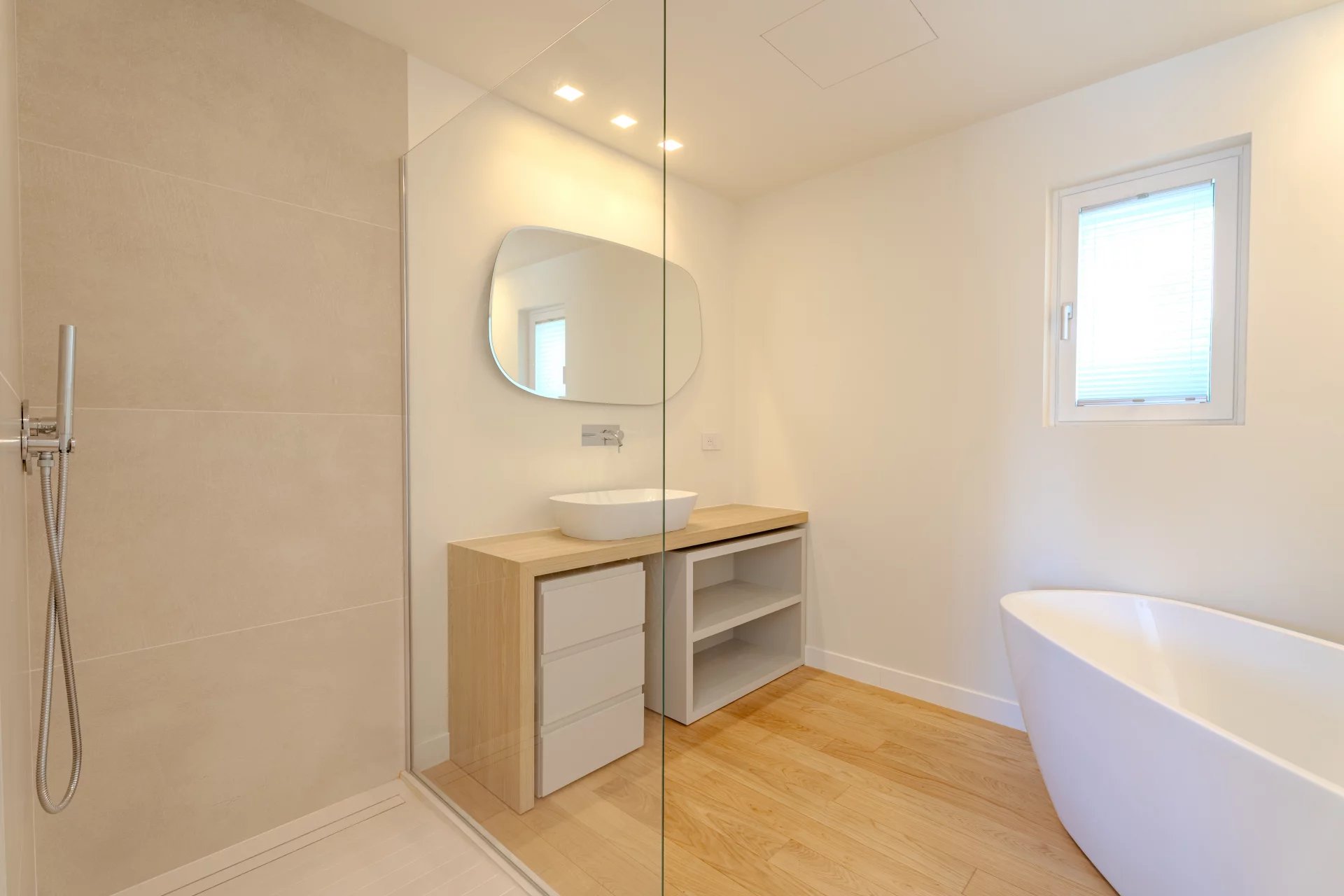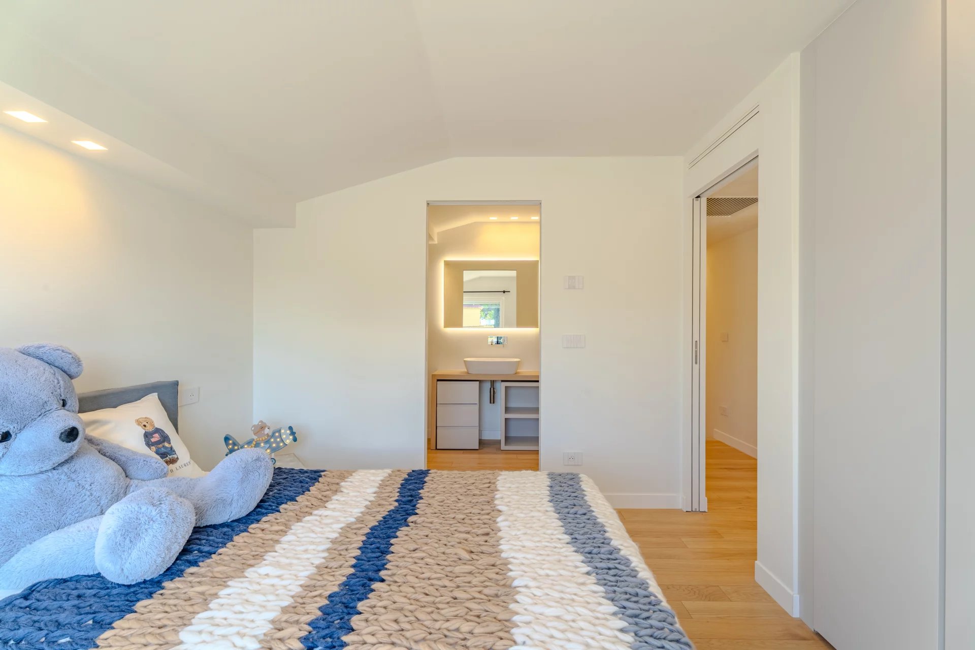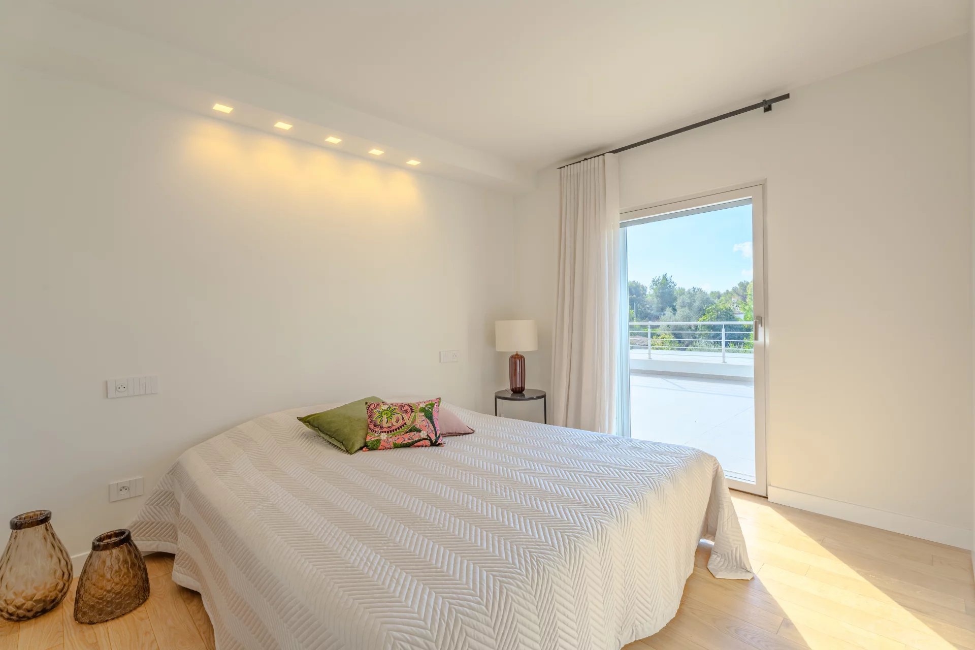 Renovated with high-end materials, the villa features reversible air conditioning and underfloor heating.