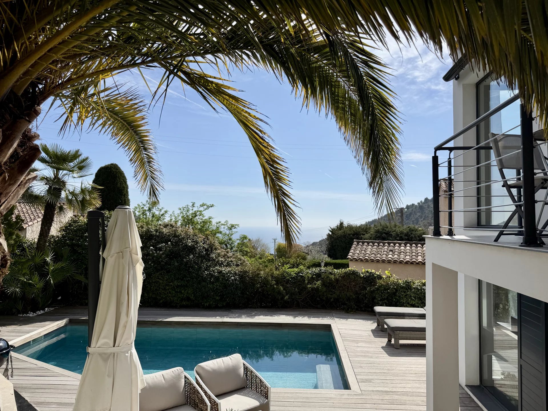 Located in a highly sought-after residential area, in absolute tranquility and only a 10-minute walk from the center of the village of La Turbie, this superb south-west facing villa enjoys a magnificent sea view, easy access, and complete privacy with no overlooking neighbors.