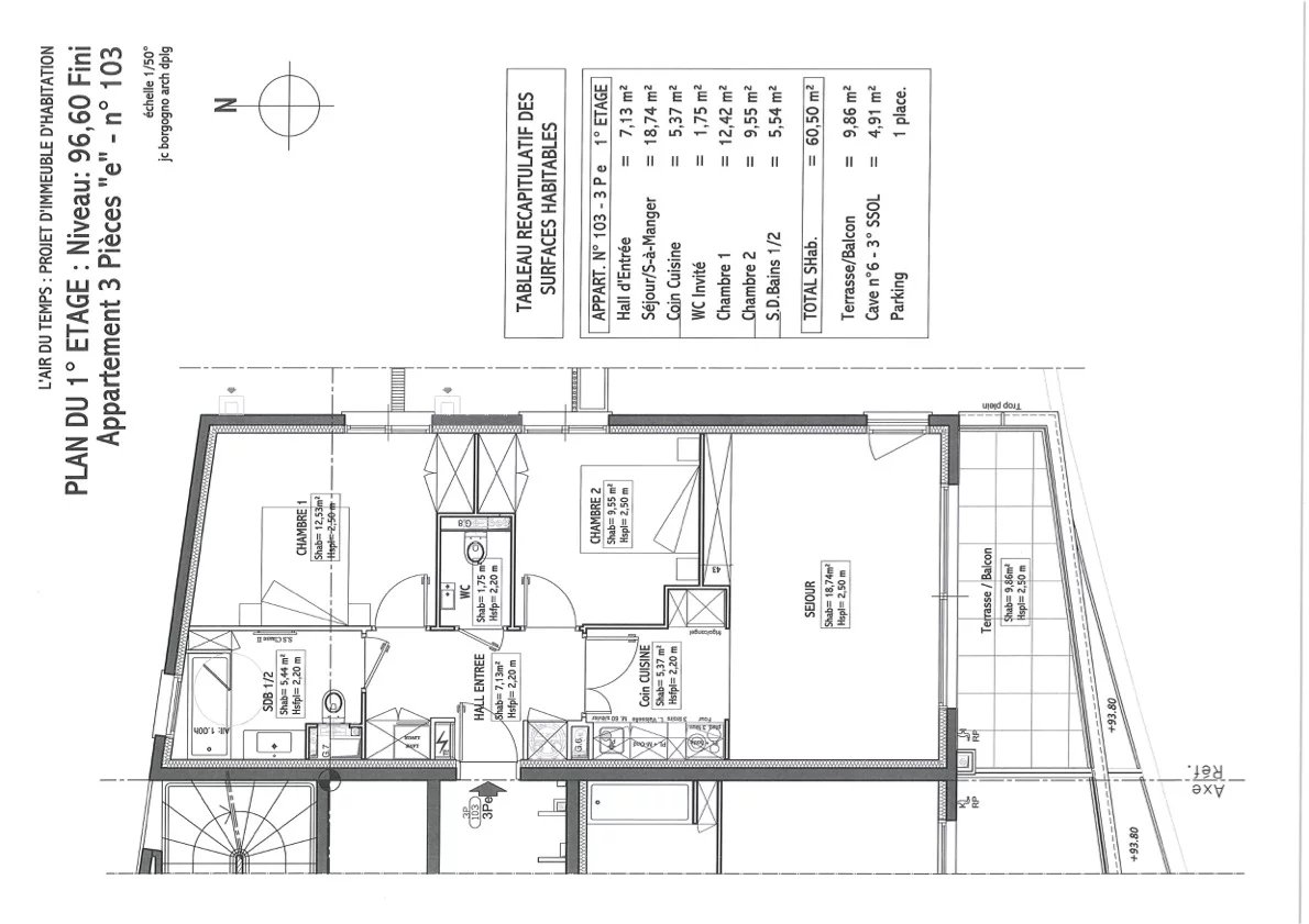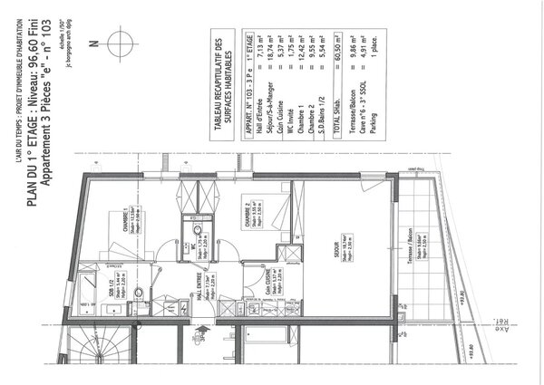 Superficie habitable : 61 m²