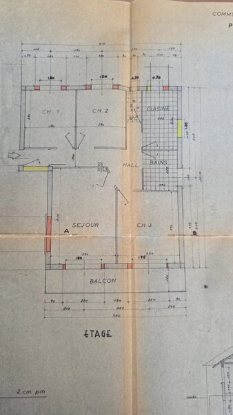 À l'étage : un séjour, trois chambres, une cuisine indépendante, une salle de bains, un WC et un balcon filant.