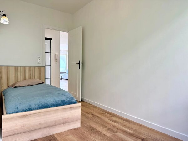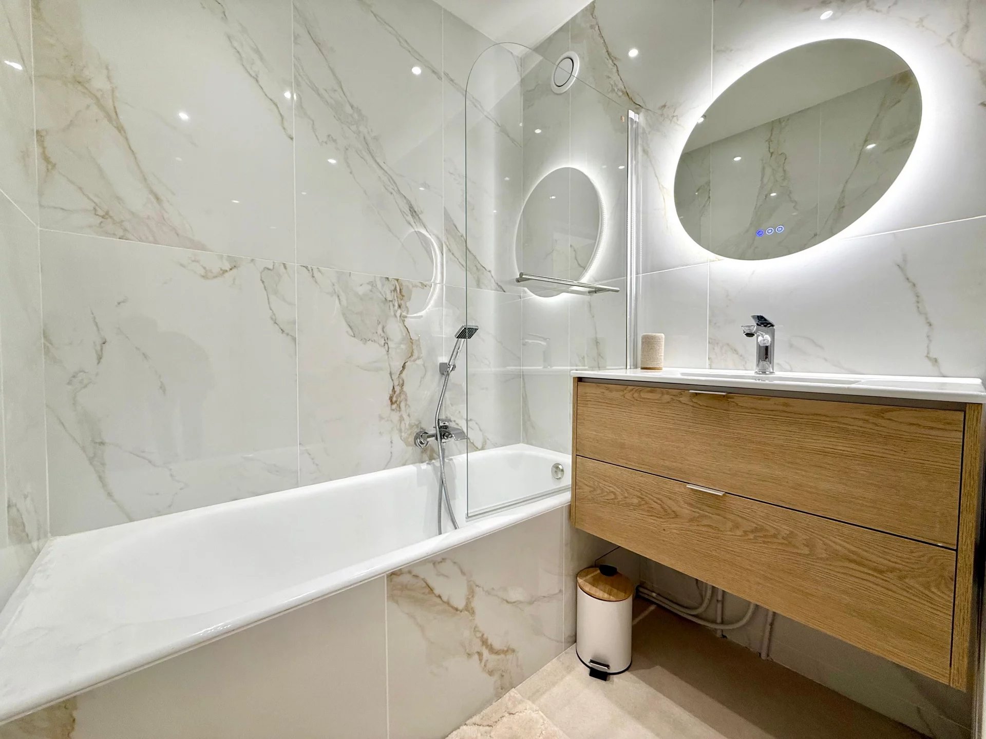 Dans la résidence "Les Charmilles", magnifique appartement de 2 pièces entièrement rénové de 52 m2 habitables composé comme suit : un hall d'entrée et son couloir, un séjour avec cuisine américaine, deux chambres dont une avec salle de douches en suite, une salle de bains avec toilettes, un balcon.