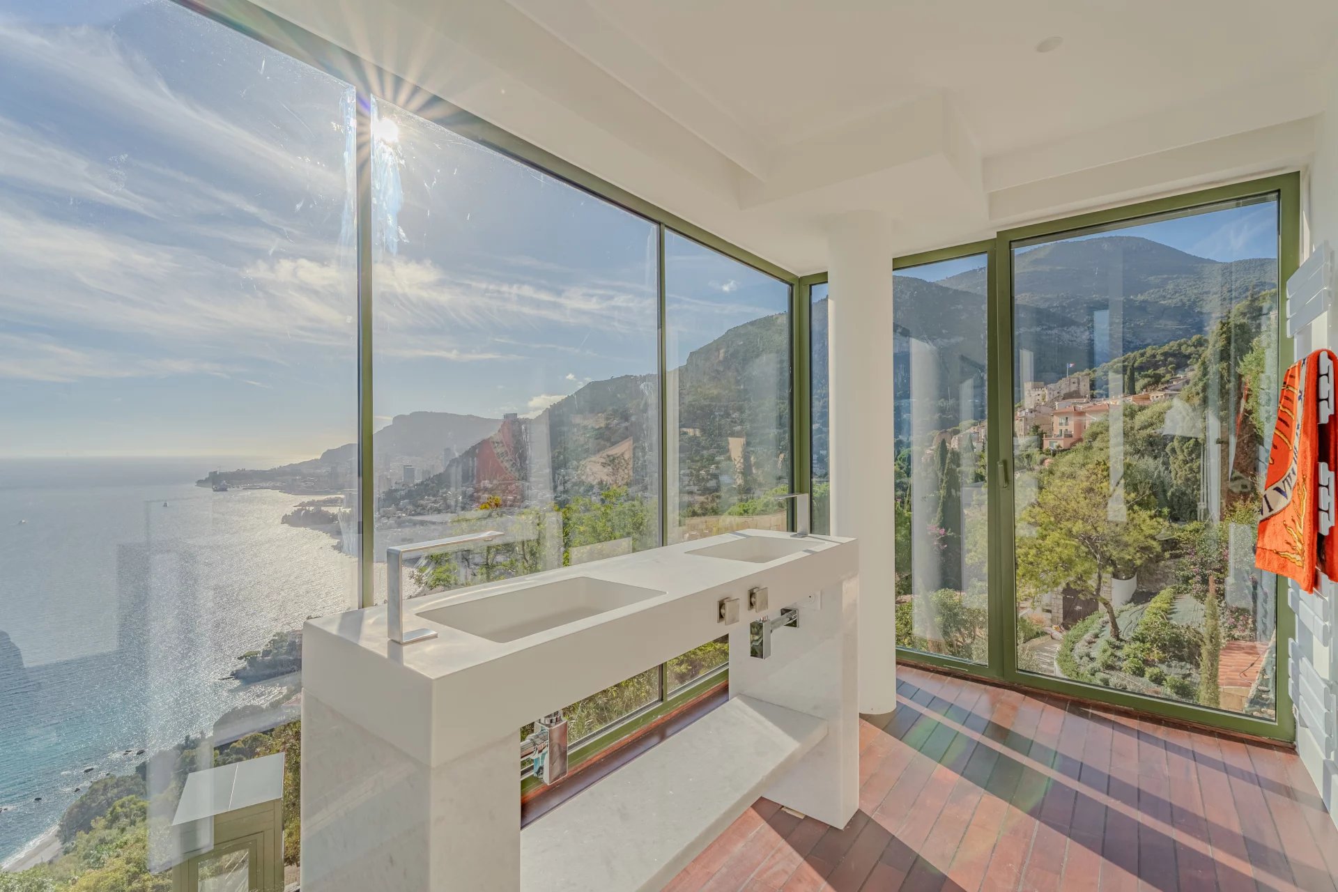 Sur les hauteurs de Roquebrune-Cap-Martin, cette propriété contemporaine entièrement neuve offre un cadre de vie exceptionnel, entre mer et montagne.
