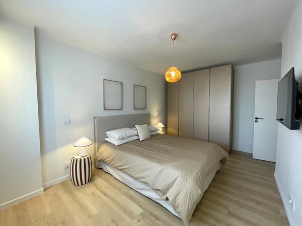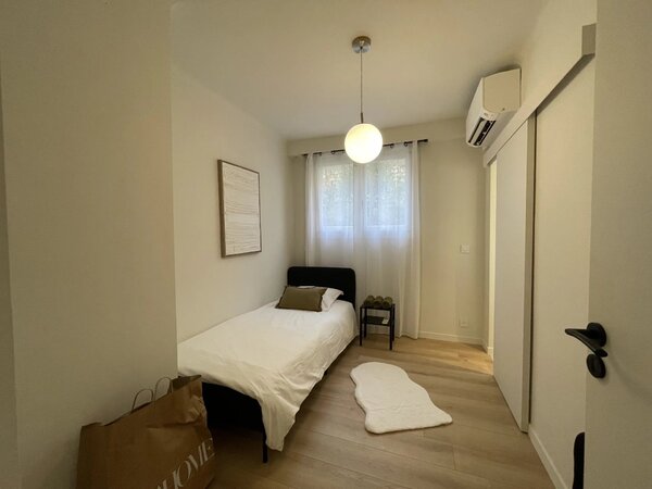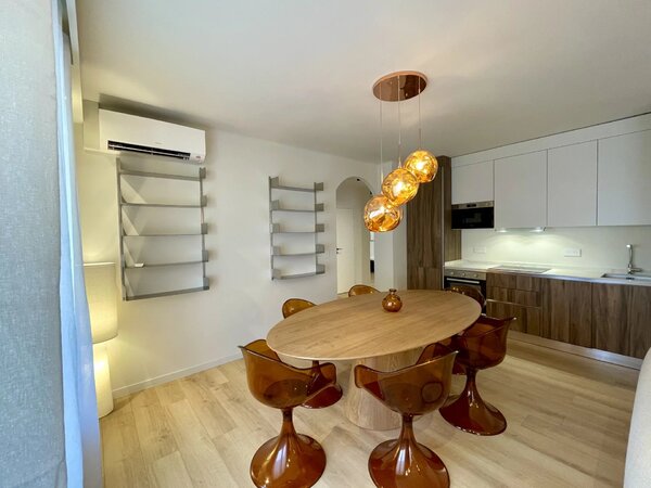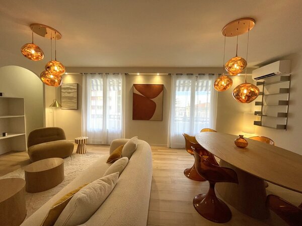 À deux pas de la frontière monégasque, découvrez ce superbe appartement 5 pièces meublé et entièrement climatisé, situé au 1er étage d’un immeuble des années 70, aménagé dans un style contemporain.