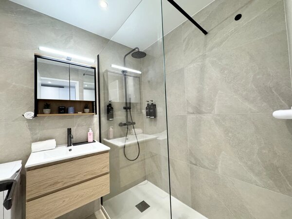 L’appartement, entièrement rénové, se compose d’un séjour lumineux avec cuisine ouverte, offrant un espace de vie agréable et fonctionnel, ainsi que d’une salle de douche moderne avec toilettes.