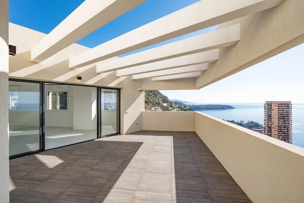 Terrasse plein sud de 45 m² avec vue mer, Monaco et Cap Martin