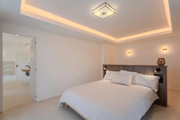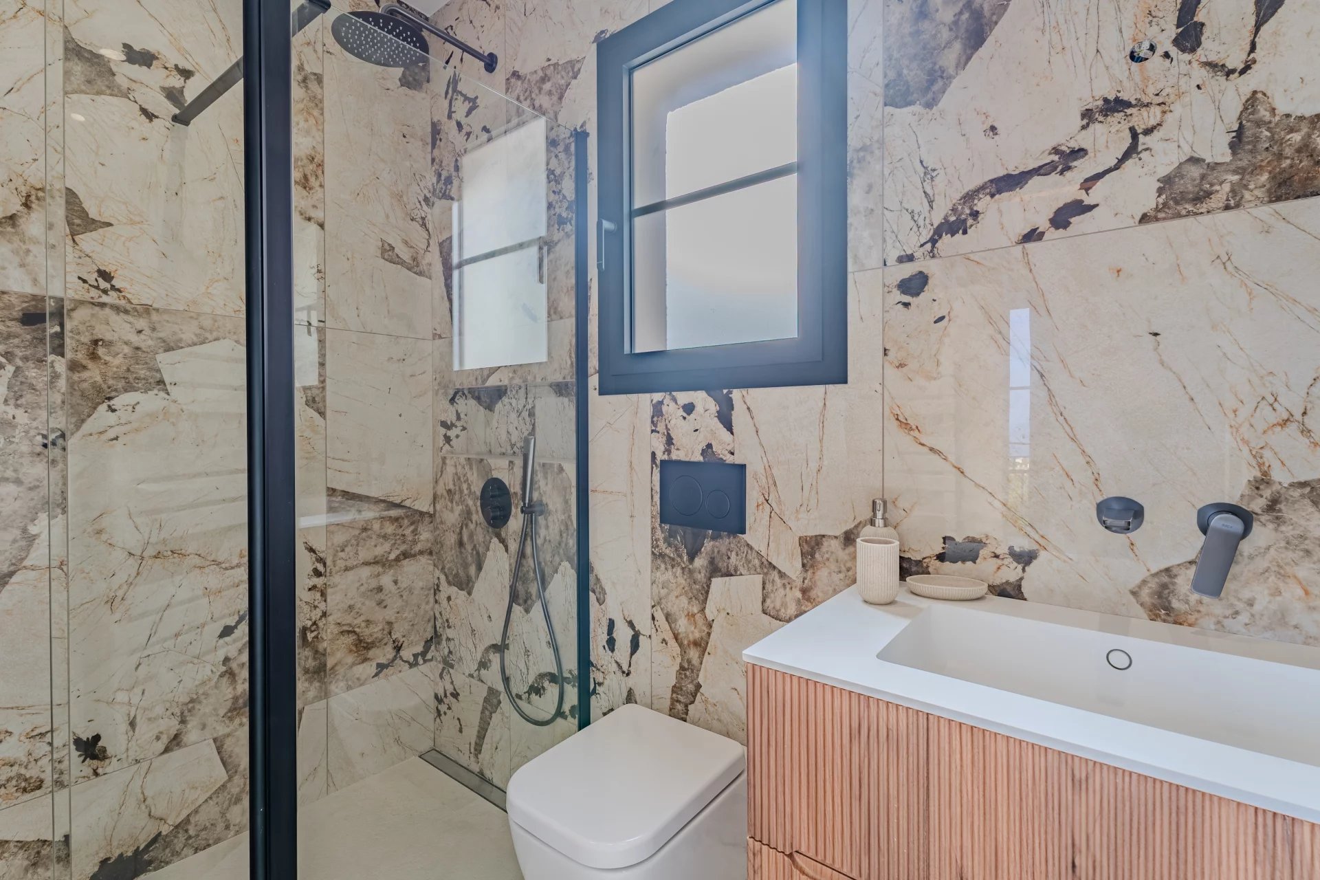 La suite padronale dispone di una spaziosa cabina armadio e di un bagno privato, mentre tre ulteriori camere da letto, ognuna con la propria doccia e armadi a muro, offrono comfort per famiglia e ospiti.