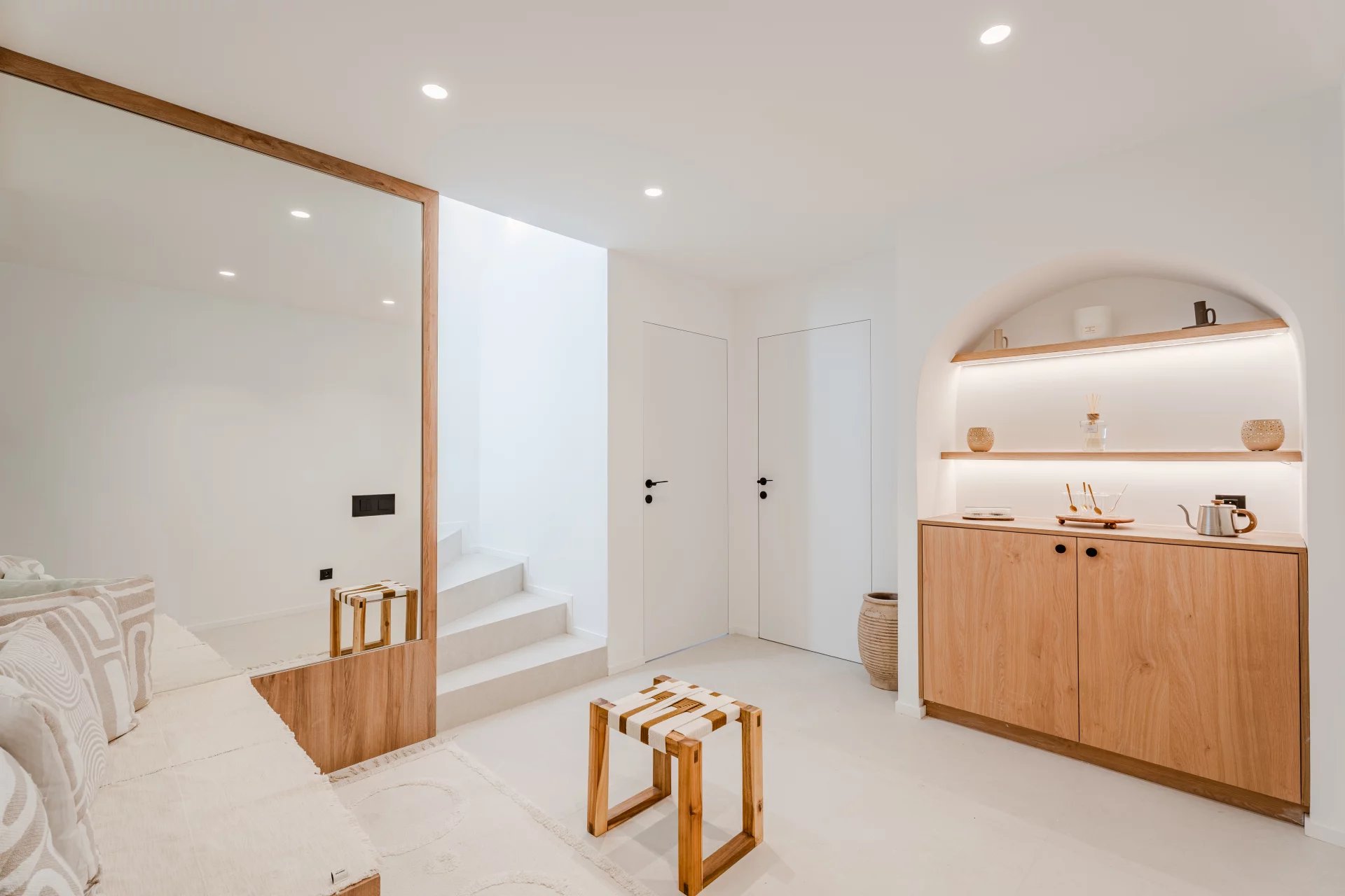 Il piano terra si apre su un luminoso soggiorno con cucina a vista, ideale per momenti conviviali.
